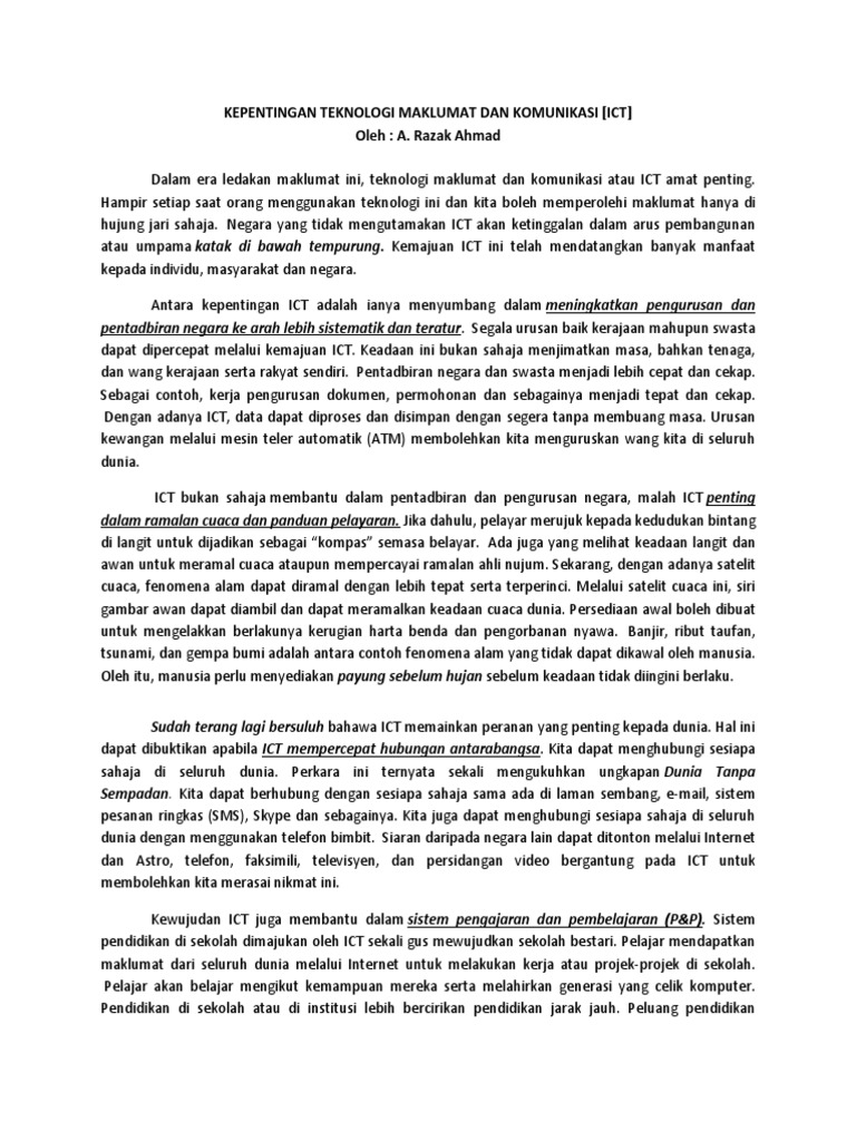 Teknologi maklumat dan komunikasi ini akan memudahkan lagi aktiviti perniagaan dalam. Teknologi maklumat dan komunikasi (ict) serta internet telah menjadikan dunia ini sebuah perkampungan global (global village). Etika komunikasi menilai mana tindakan komunikasi yang baik dan buruk berdasarkan standar yang berlaku. Teknologi maklumat boleh didefinisikan sebagai penggunaan sistem komputer dan telekomunikasi untuk menyimpan, mengambil, melindung, memproses, melihat dan menghantar maklumat tanpa batasan waktu dan tempat. Seiring dengan melesatnya perkembangan teknologi, komunikasi melalui media bisa dibilang sebagai komunikasi yang paling sering kita lakukan. Penggunaan messenger seperti yahoo, skype, gtalk dan hotmail telah memudahkan lagi komunikasi antara pelbagai pihak dan penggunaanya amat meluas. Antara kebaikan teknologi adalah seperti globalisasi, komunikasi, dari sudut keberkesanan kos, mengurangkan jurang budaya, meluangkan lebih masa dan hak persendirian ialah yang mana dengan kehadiran teknologi, proses komunikasi menjadi lebih cepat, lebih mudah dan lebih selesa. Sebelum menganalisis kebaikan dan keburukan teknologi maklumat, adalah sangat penting untuk antara kebaikan teknologi adalah seperti globalisasi, komunikasi, dari sudut keberkesanan kos, mengurangkan jurang budaya, meluangkan lebih masa dan mencipta peluang pekerjaan yang baru. Perkhidmatan capaian maklumat protokol pindahan fail (file transfer protocol : Untung sabut timbul, untung batu tenggelam, pepatah ini mengingatkan kita supaya sentiasa melakukan kebaikan dan berlaku buruk akan mendapat balasan buruk. Teknologi maklumat dan komunikasi mampu menjadikan masyarakat negara ini sebagai sebuah masyarakat yang sentiasa peka dengan jika kita tinjau kebaikan ict kepada negara pula, kehadiran teknologi maklumat dan telekomunikasi merupakan anugerah istimewa kepada dunia pendidikan. * blog ialah satu laman web sosial yang membolehkan pengguna menulis dan menyimpan catatan secara elektronik. Blog untuk matapelajaran tmk tahun 5.