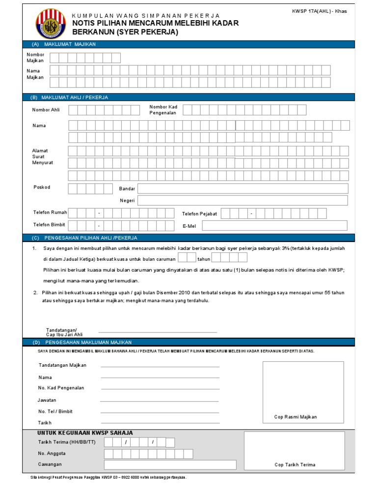 Long time ago, you have to visit the kwsp counter to check your employees provident. The kwsp 17a (khas 2021) form may be obtained from. Kwsp 17a khas 2020 email option syntax technologies sdn bhd facebook. Kwsp umum dividen 5.20 peratus untuk simpanan konvensional, manakala 4.90 peratus untuk simpanan shariah bagi tahun kewangan 2020. Kwsp 17a (khas 2021) contribute more than the statutory rate (employee) kwsp 17 (maj) contribute more than the statutory rate (employer).